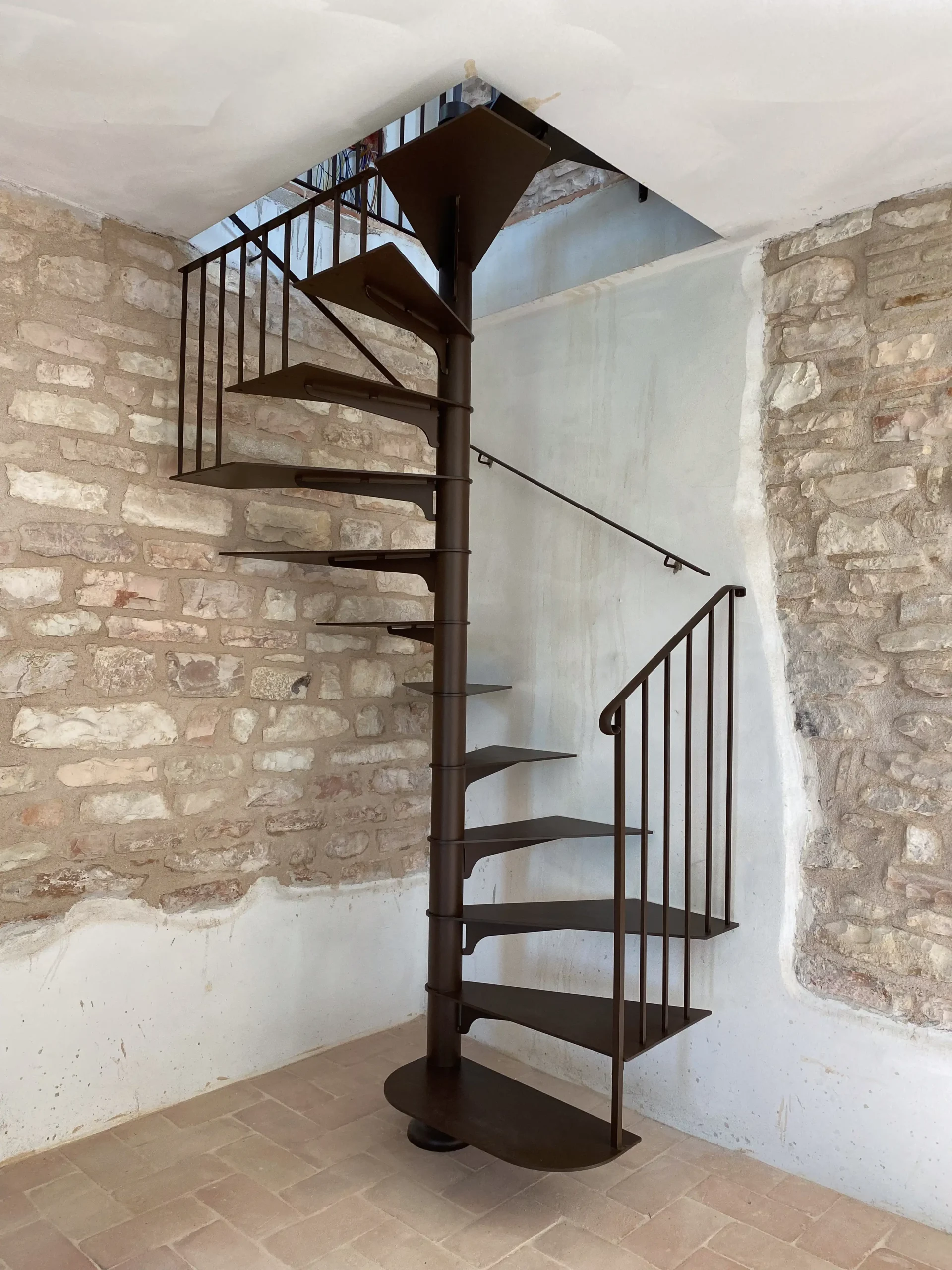 La scala a chiocciola è la più comune dei collegamenti verticali, da sempre composte in ferro o legno ma soggette a continui cambiamenti d’identità. Con le nostre capacità offriamo prodotti al passo coi tempi creando diversi abbinamenti di stile e materiali rendendole completamente personalizzabili nel dettaglio. La scelta del gradino in legno per una scala elegante e accogliente, il gradino in lamiera per una linea minimale e moderna. Sviluppo rotondo o quadrato, singola o due piani, di servizio o principali, il mondo della scala a chiocciola è vasto e sempre in evoluzione.